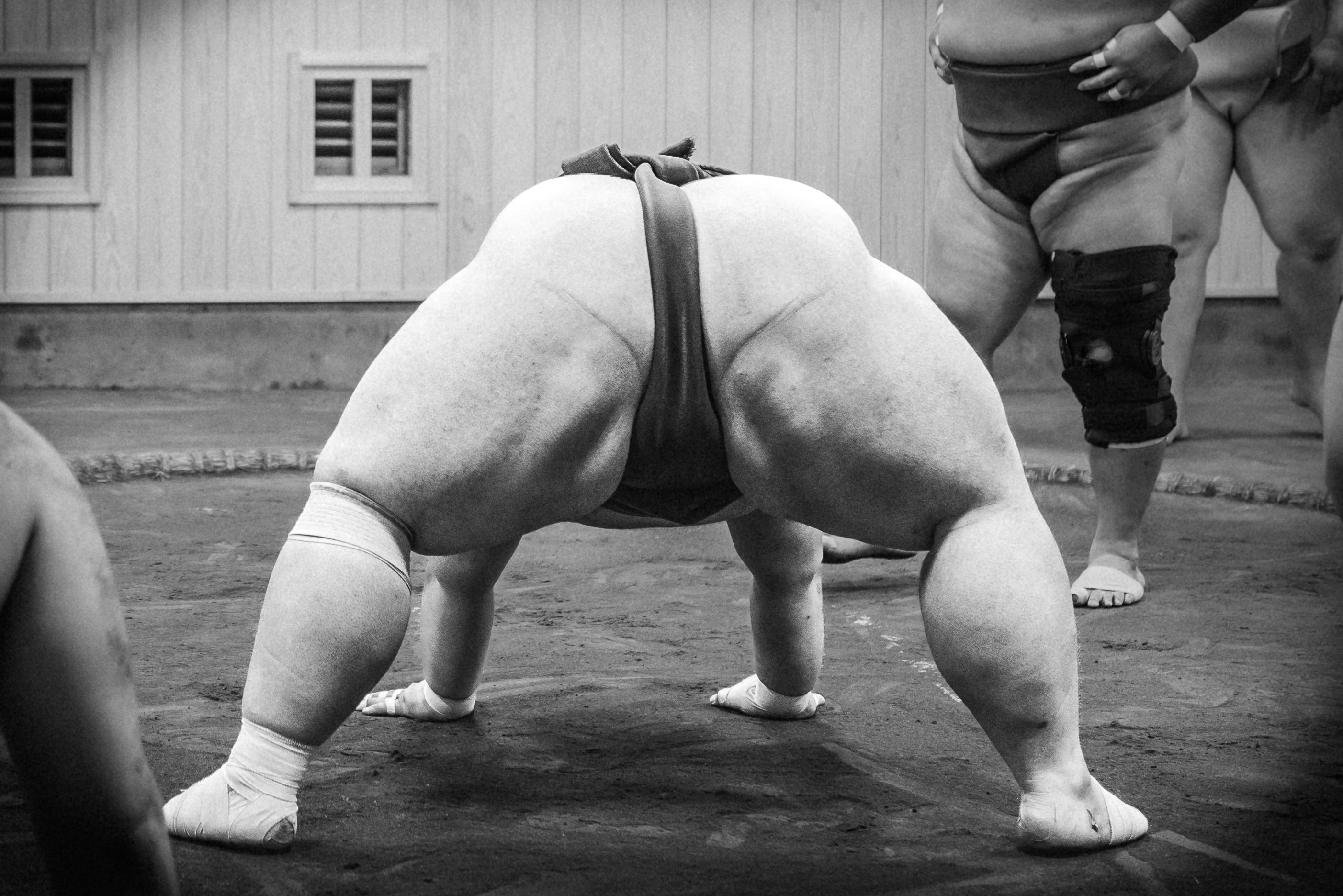 Las proporciones corporales y la flexibilidad de un luchador de sumo son impresionantes. Esta es una muestra.