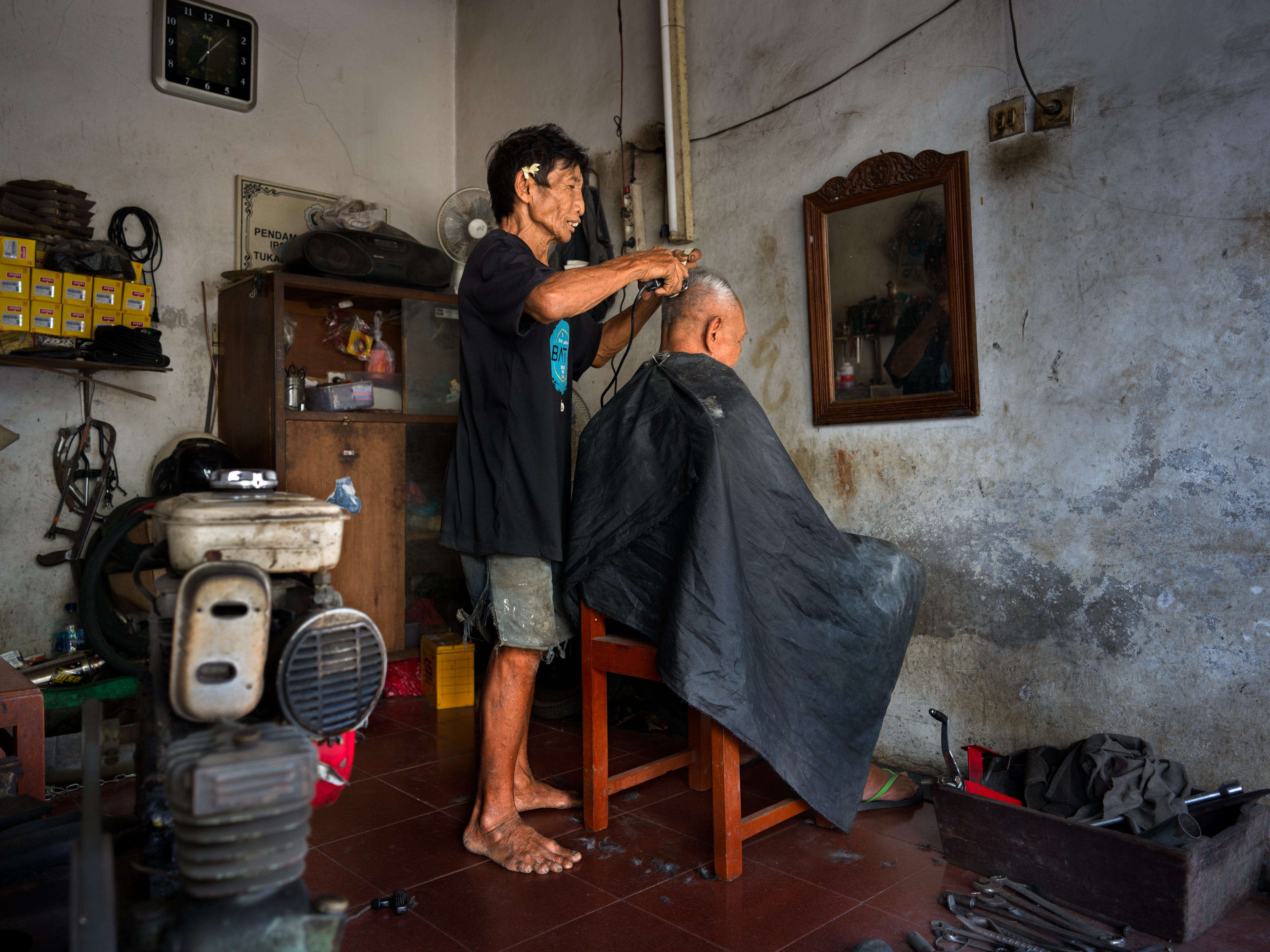 Te dejo dos fotos que hice este sábado mientras caminaba por Pecatu al mediodía. Es un taller de motos / peluquería. En Bali, la calle y los locales comerciales, tienen fronteras poco definidas. Las ‘puertas’ son distintas a las que estamos acostumbrados. También, son distintas las fronteras de la funcionalidad de cada espacio.